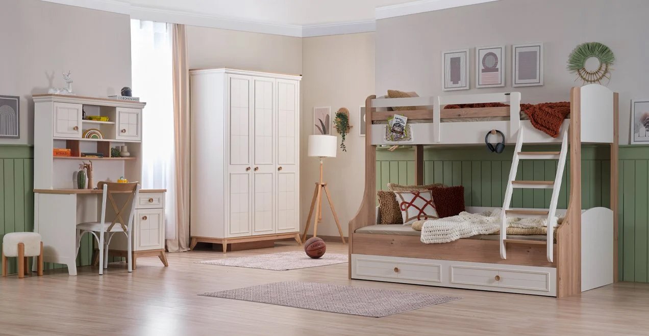 3 Kapaklı Dolap + Ranza + Çalışma Masası
