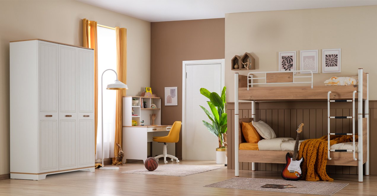 3 Kapaklı Dolap + Ranza 90x190 + Çalışma Masası