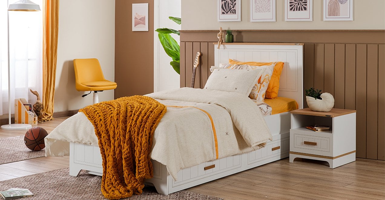 * Karyola metal şasesi ve sağlam yapısıyla uzun yıllar kullanılabilir