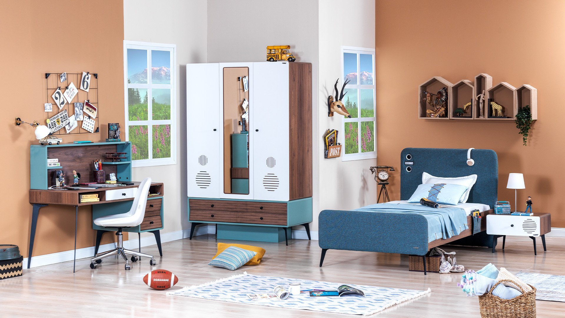 3 Kapaklı Dolap + Karyola 100X200 + Çalışma Masası