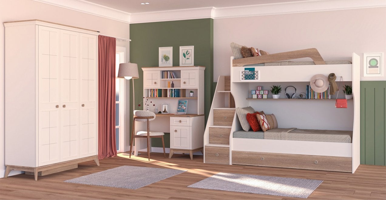 Ferro Compact Ranza Takımı; fonksiyonelliği, sağlam yapısı ve modern tasarımıyla hem çocuk hem genç odaları için mükemmel bir çözümdür. Takım; merdiven dâhil üst ranza, alt karyola, geniş depolama alanları ve güvenli yapısıyla uzun yıllar konforlu bir kullanım sunar.