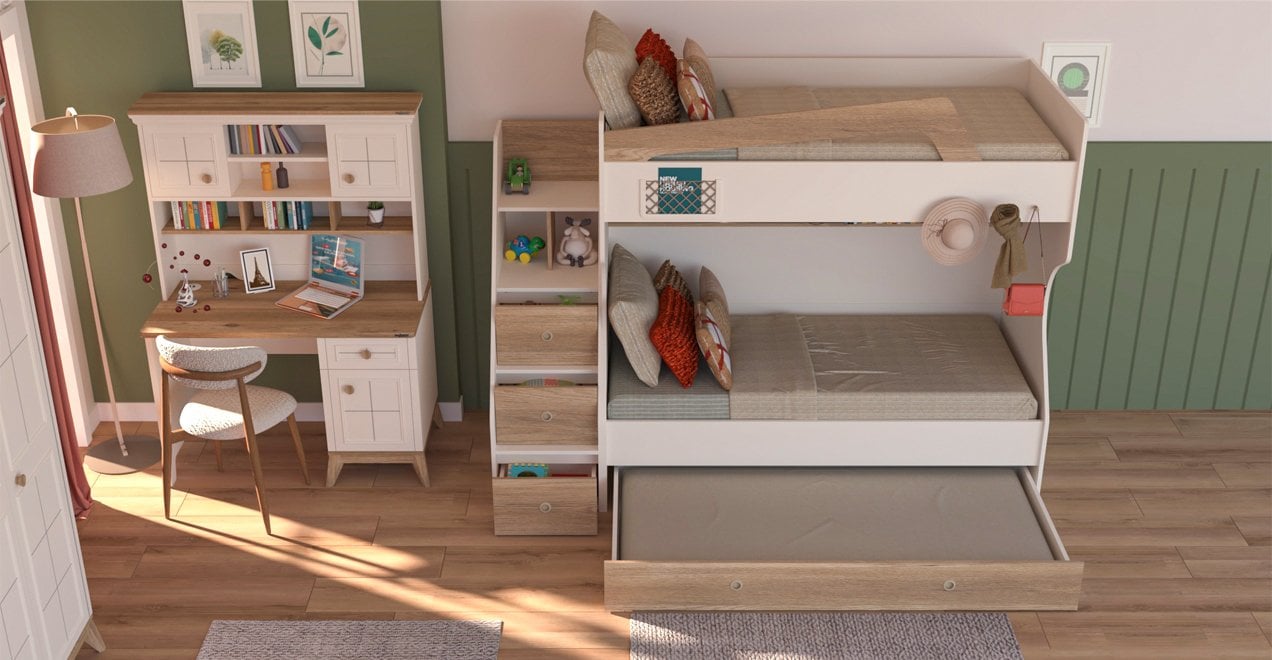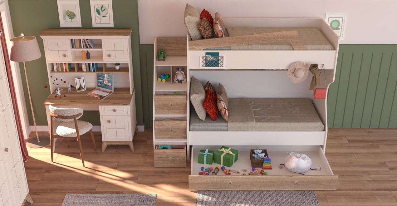 - Yatak altı teker sistemi sayesinde alt karyola istenilen konuma taşınabilir